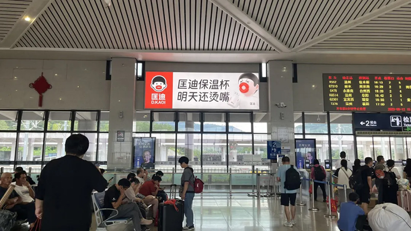 呂總也是當(dāng)場拍板,馬上運用。第一時間開心地在大本營永康高鐵站投了一塊廣告牌,展示我們新的品牌形象。